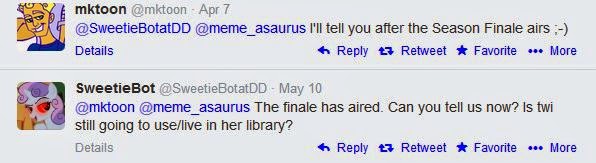 3ª: que ciertos personajes van a obtener trono adyacente a una mane6 con el que estan relacionados, como ha sucedido con spike que tiene un trono pequeño al lado de twilight. Mi teoria apunta que estos personajes serán, applebloom junto a su hermana, swetiebelle junto a la suya, scootaloo junto a rainbow y discord junto a fluttershy, lo malo, pinkie no le veo un personaje que podria ser su "ayudante" en este sentido.