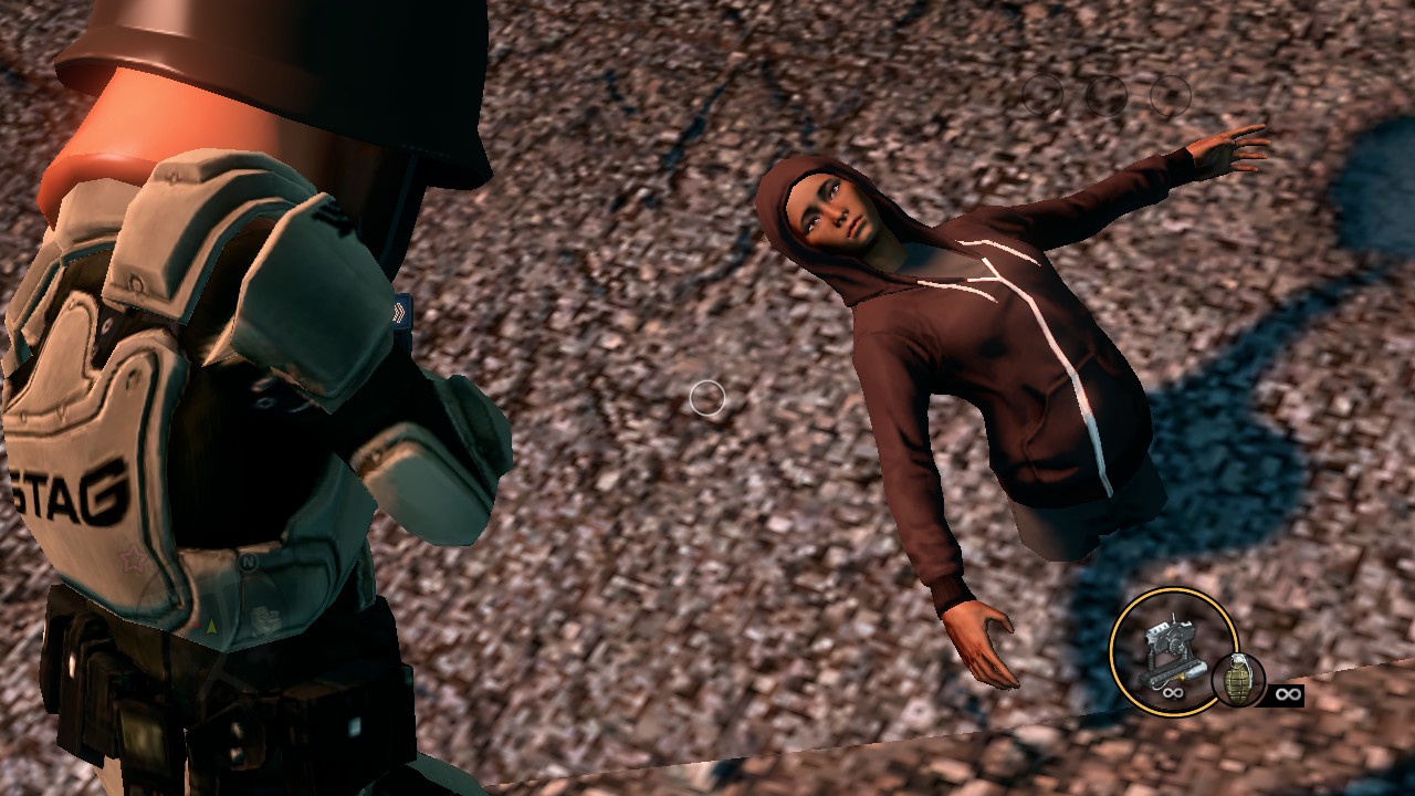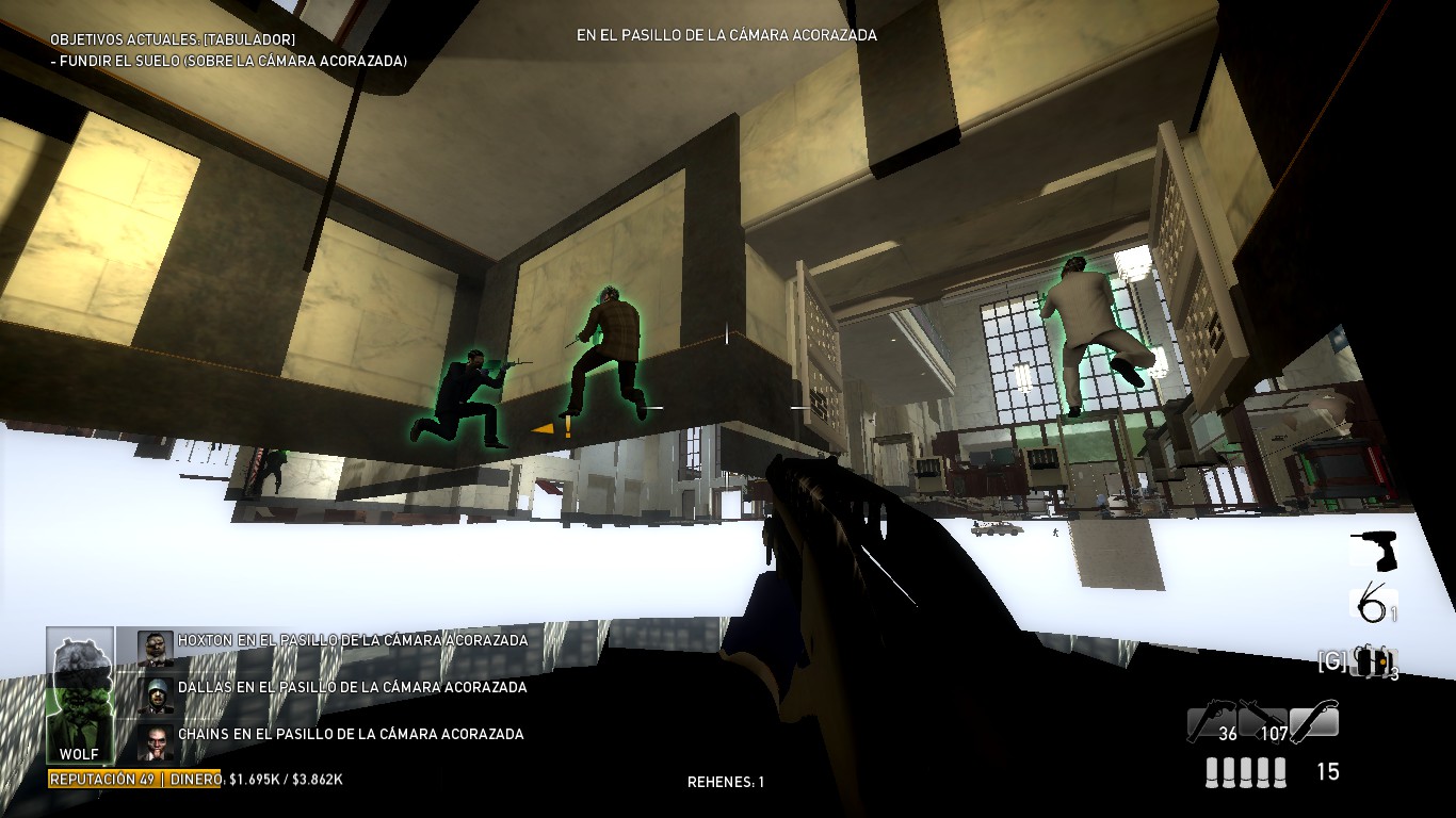 Tras llevarse un escopetazo en la cara, este polí de Pay Day decidió fusionarse con la pared.